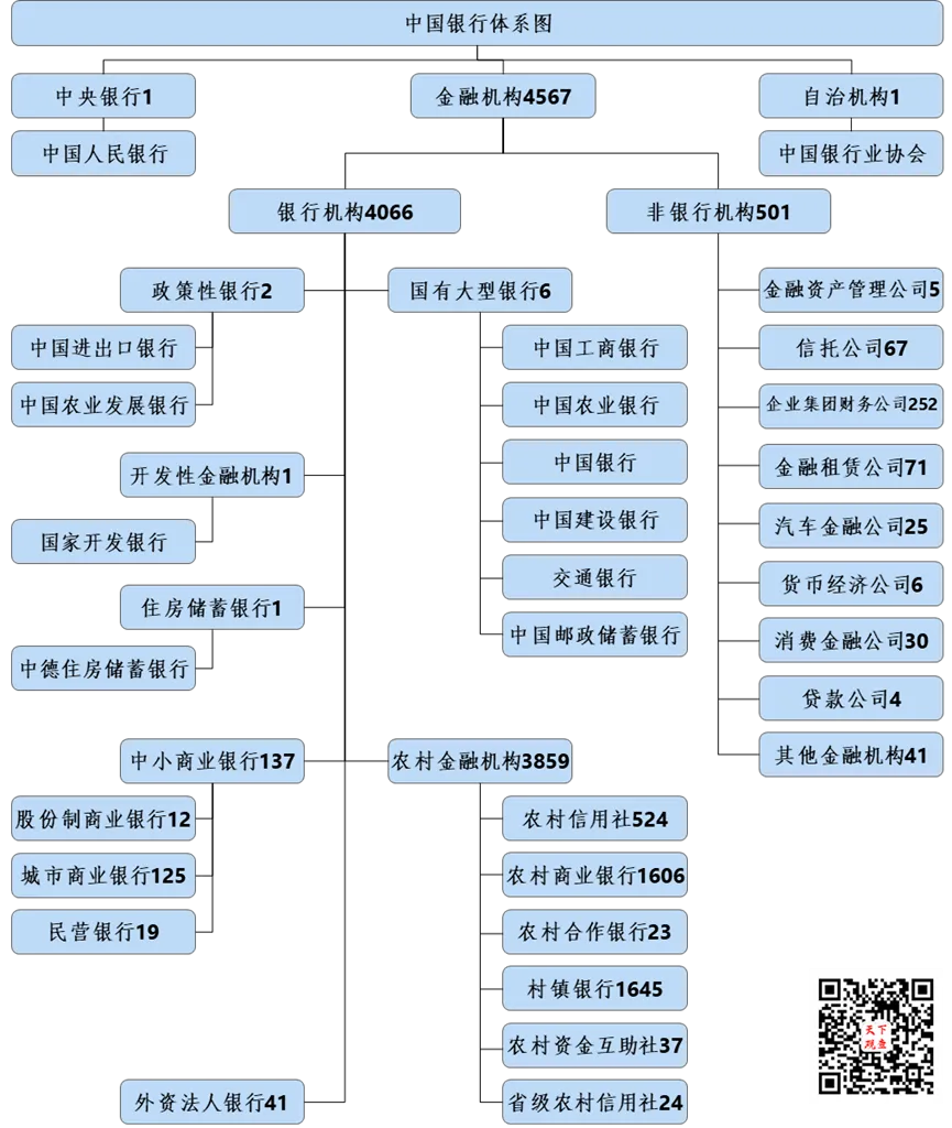 根据2022年12月末金管总局发布的银行业法人名单统计,中国共有4567家银行业机构(截至2023年6月末,为4561家)。
