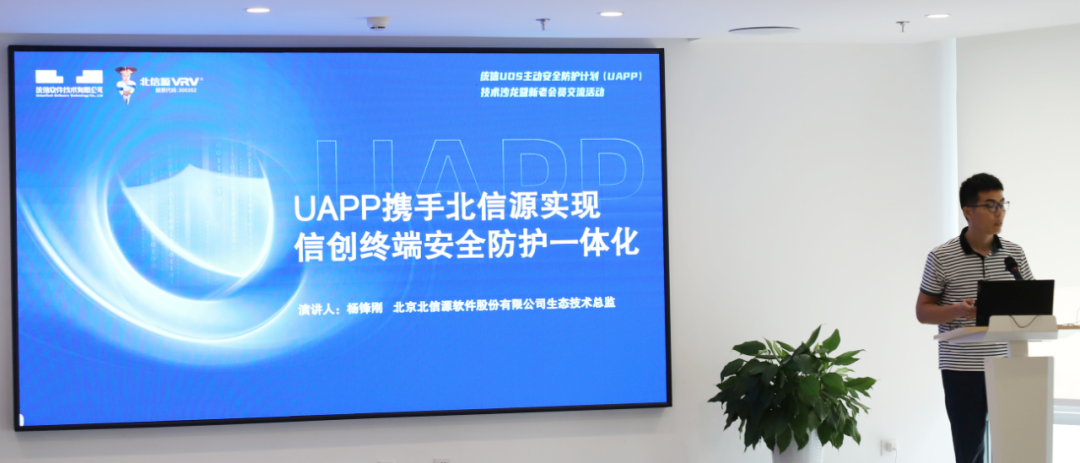 随后,UAPP首批成员安恒信息副总裁王瑞、北信源生态技术总监杨锋刚先后发表主题演讲,分享基于UAPP计划的合作成果: