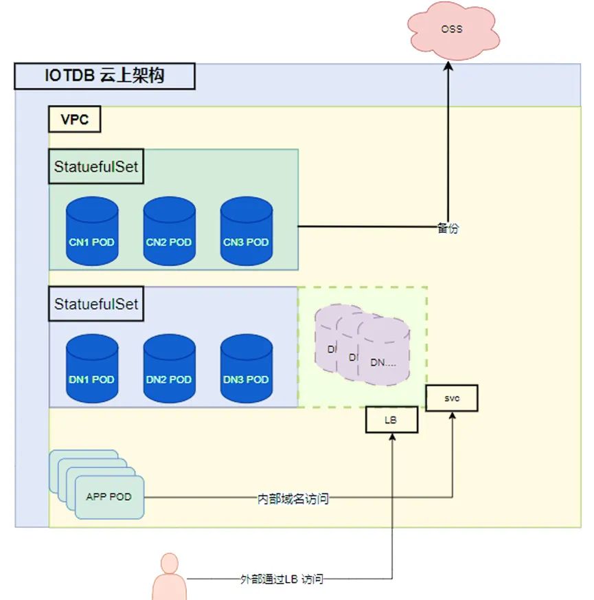 最终,我们决定直接在业务应用的 K8S 环境上部署 IoTDB,实现云上集成应用。这样不仅可以提高运维的一致性,也充分利用了云环境的弹性。