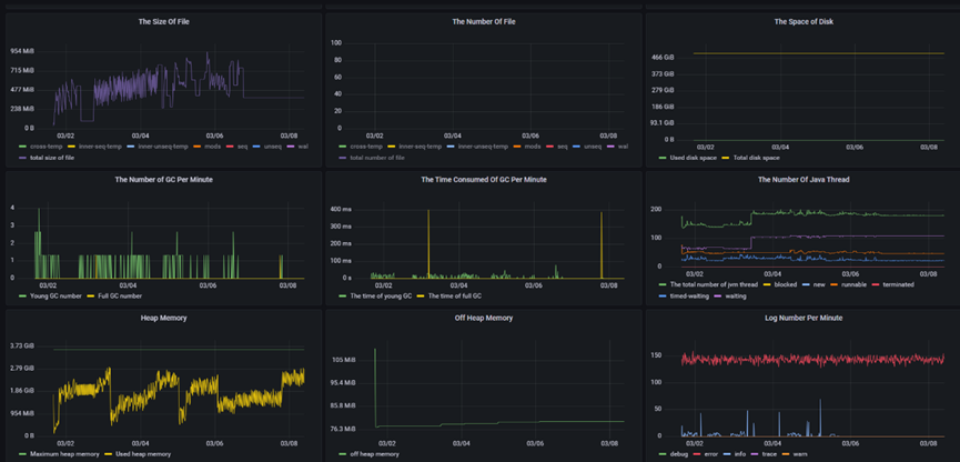 为满足实时监控处理需求,我们利用了 IoTDB 内置的 Prometheus Exporter,快速接入监控,实时了解集群状态,为性能优化指明方向。