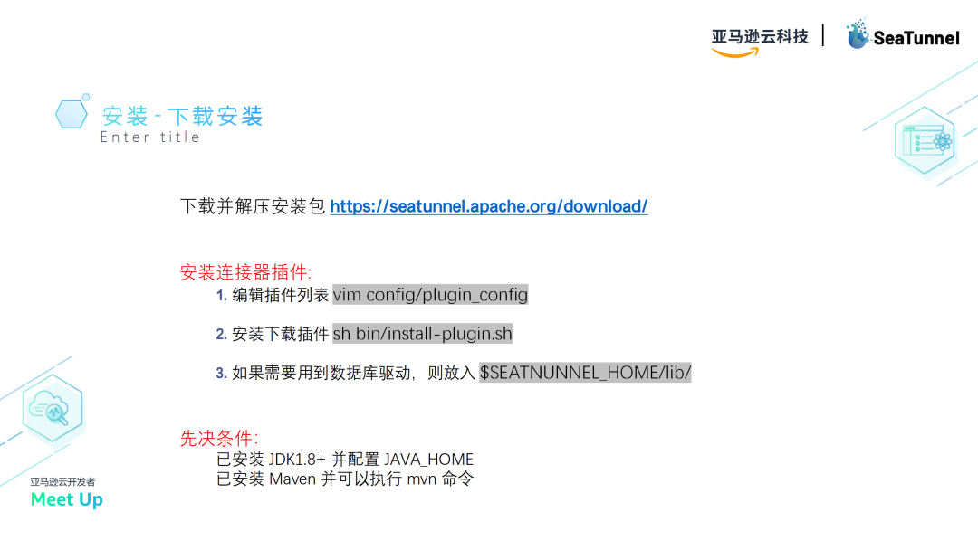 如果是从官网下载SeaTunnel安装包,下载完成后需要进行插件的安装。由于安装包不包含插件,用户需要编辑插件的配置文件,并下载安装这些插件到安装包中。