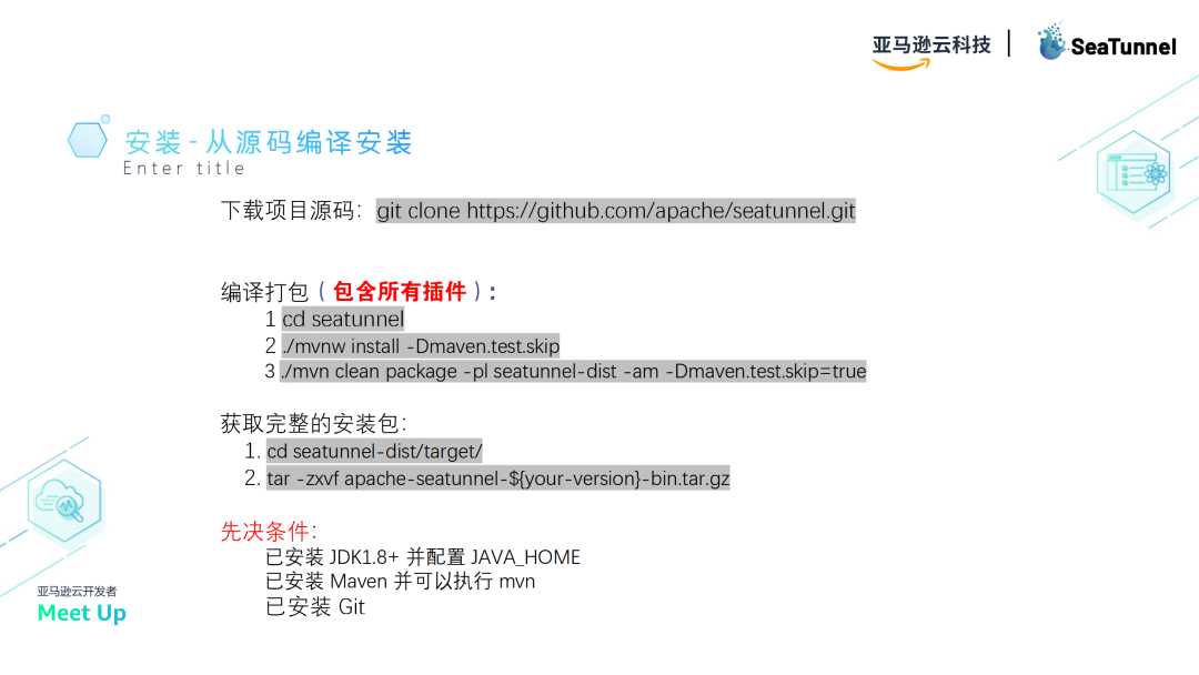 如果是从源码编译安装,可以从GitHub克隆SeaTunnel工程,使用mvn