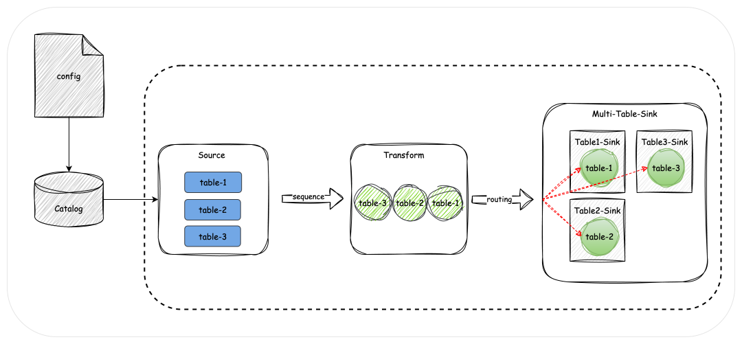 对于Sink,定义了SupportMultiTableSink接口,通过实现该接口,可以动态生成多表写入的执行计划。