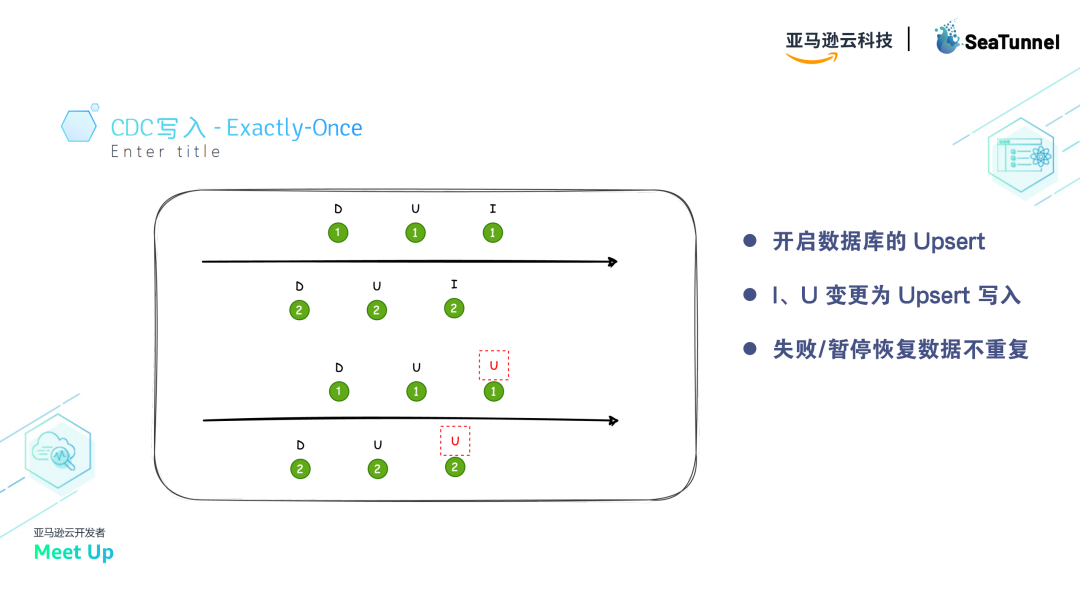 语义,SeaTunnel在写入过程中也做了一些特殊处理。由于状态的暂停和恢复,可能会发生重读或重放某个checkpoint的数据。