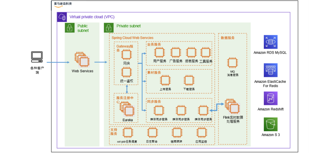 亚马逊云科技部署架构图
