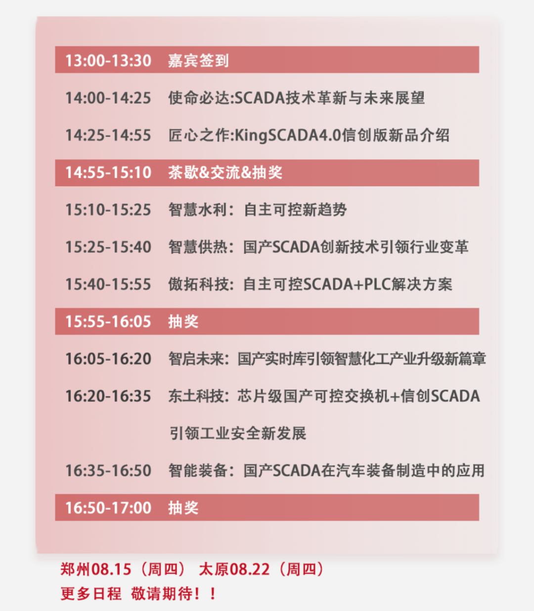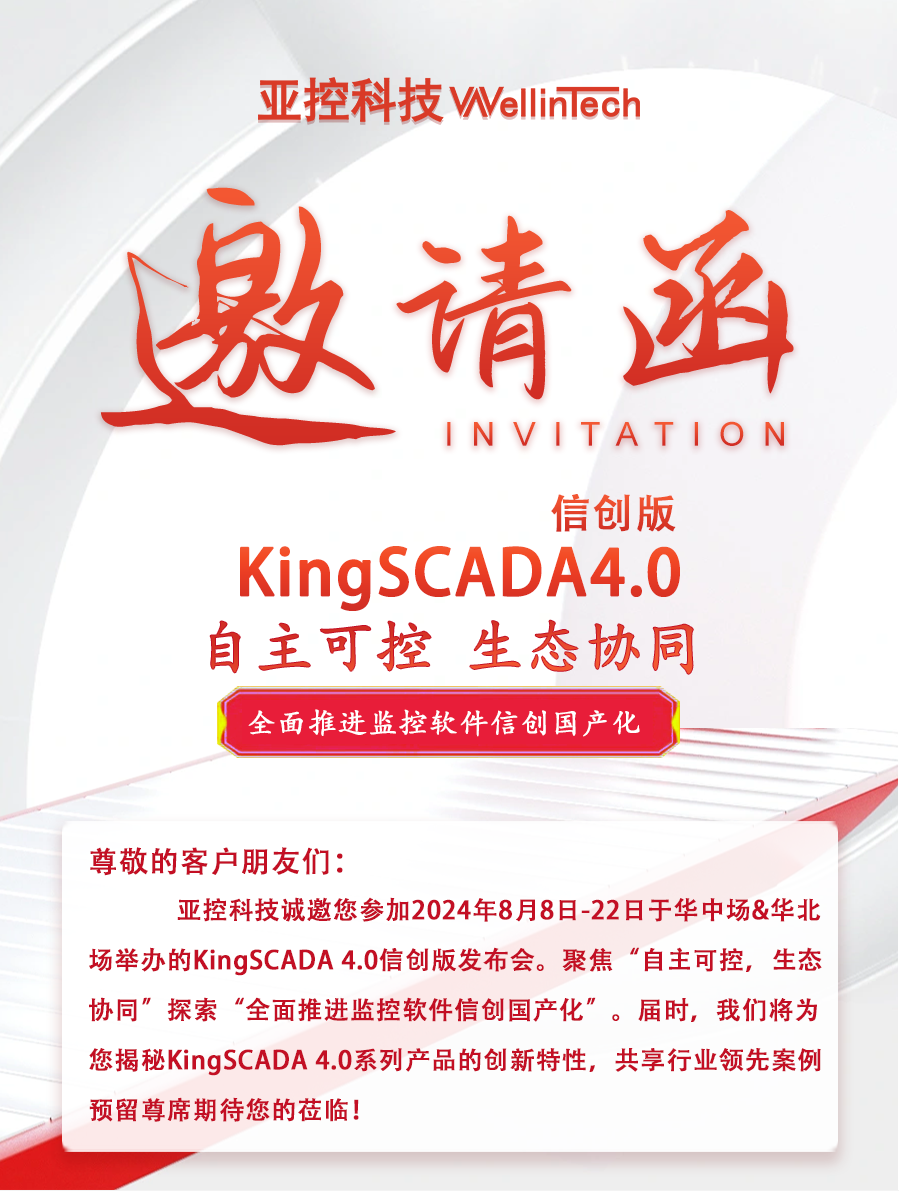 随着信创的浪潮在祖国大地不断涌动,亚控科技携KingSCADA 4.0信创版,即将在华北和华中地区续写辉煌。诚挚邀请您共同见证这一历史性的时刻。我们将在2024年8月,于华中下辖城市:长沙(8.8)、武汉(8.13)、合肥(8.15);华北下辖城市:济南(8.8)、郑州(8.15)、太原(8.22)举办的巡回发布会,“两区六城”举办的“夏末金秋”共鉴巡回发布会,共同探索“自主可控,生态协同”的信创产业新篇章。