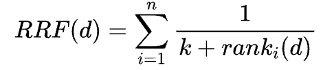 Reciprocal Rank Fusion(RRF)是一种融合算法,用于将多个查询结果进行融合,以提高搜索结果的准确性。RRF 的基本原理是对每个查询结果进行排序,并根据排名分配权重,最终将各个查询结果的权重进行累加,生成融合后的结果。