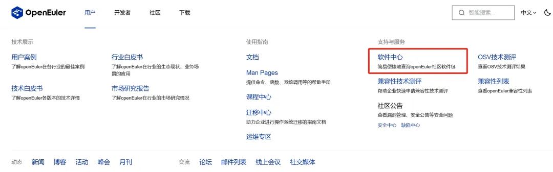 为方便广大开发者使用,openEuler上线软件中心。该平台不仅支持开发者快速查询、下载使用所需要的软件;还提供一系列软件工具和解决方案,提供对openEuler社区版各个版本的状态查询和使用方式,方便开发者根据自己的使用场景选择openEuler软件包。欢迎访问体验:https://easysoftware.openeuler.org/