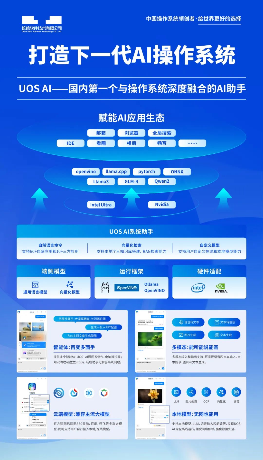 目前,统信软件正在将AI能力变成操作系统的基础服务之一,这意味着未来操作系统将不再仅仅是软件运行的平台,而是集成了强大AI能力的智能化平台。这种转变将极大地扩展操作系统的应用场景和功能边界。