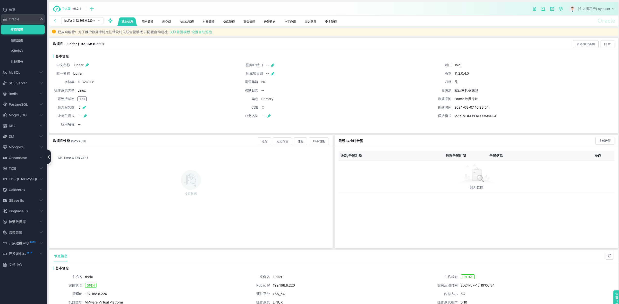 平台支持服务器上多实例,只纳管选择的;也支持 RAC 先纳管部分节点,再纳管新增的节点,或者故障恢复的节点。