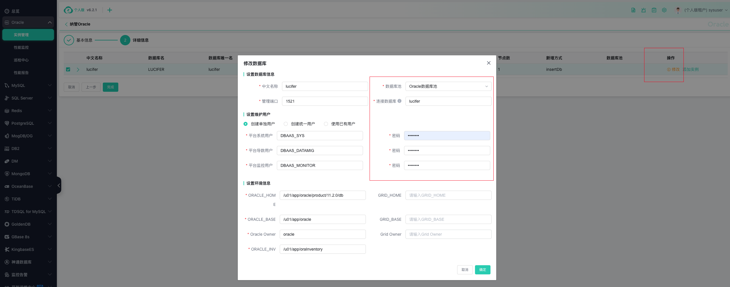 这里需要在被纳管数据库中提前创建 平台纳管用户:
