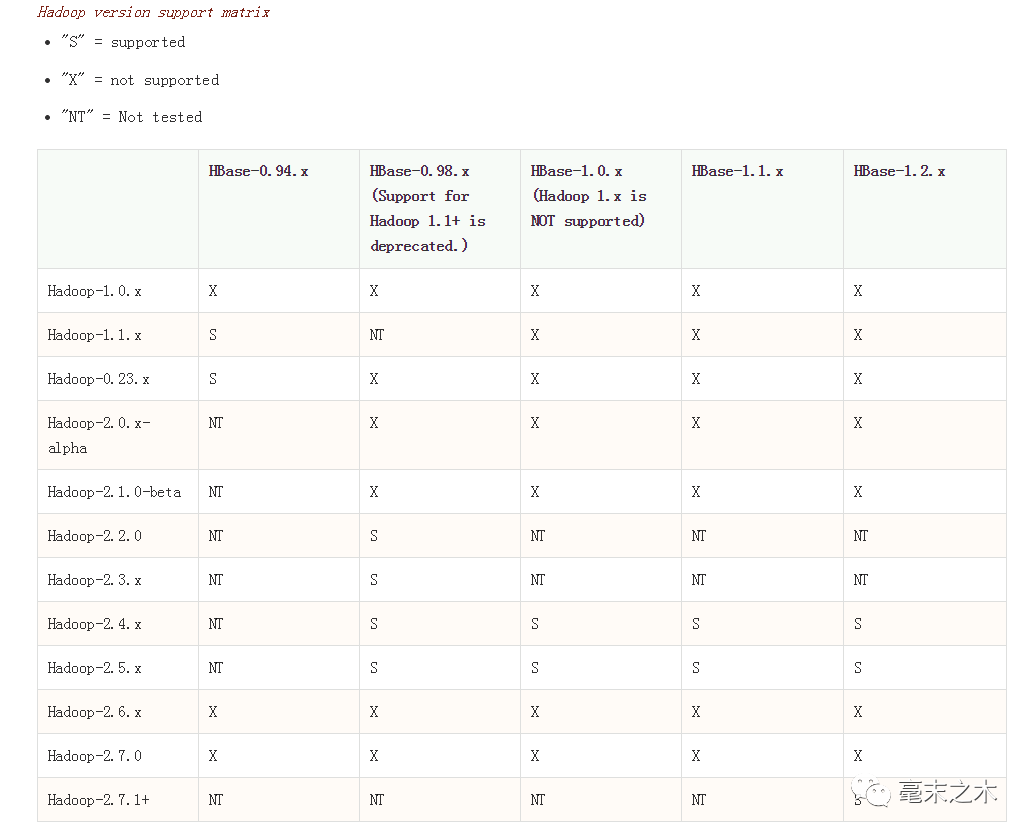 | Hadoop-1.1.x | NT | S | S | X | X |