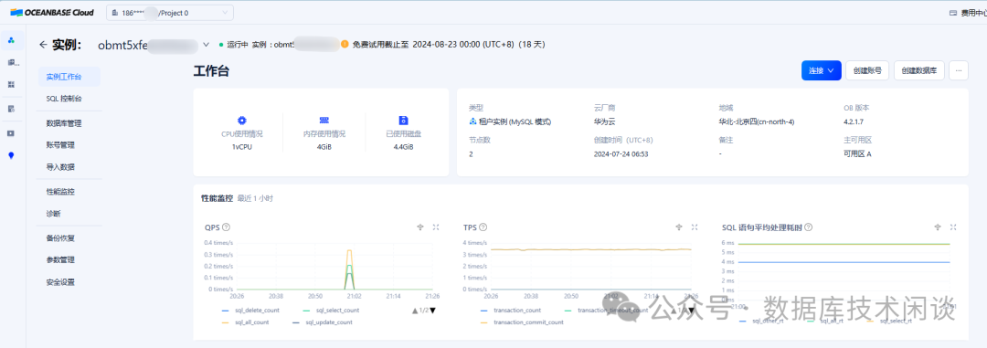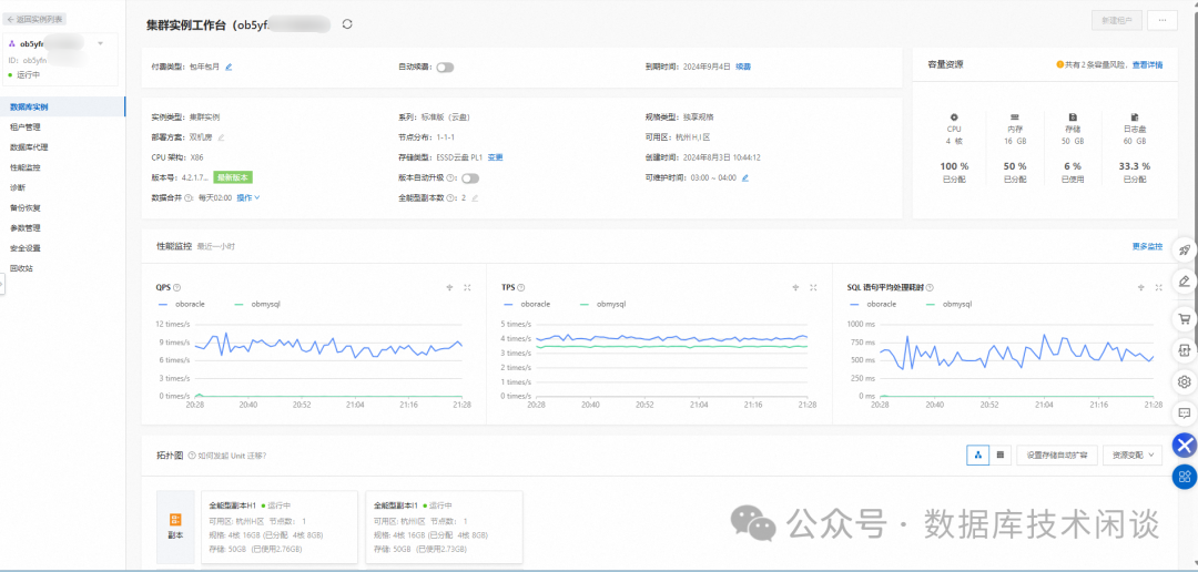 前面试用的都是 OBCloud 租户实例,看不到租户所在的集群信息。再次采购了一个 OBCloud 集群实例体验一下。