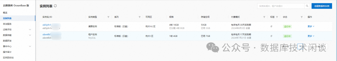 OBCloud 集群实例产品功能页面如下。也是包括实例创建、数据迁移、数据研发等。