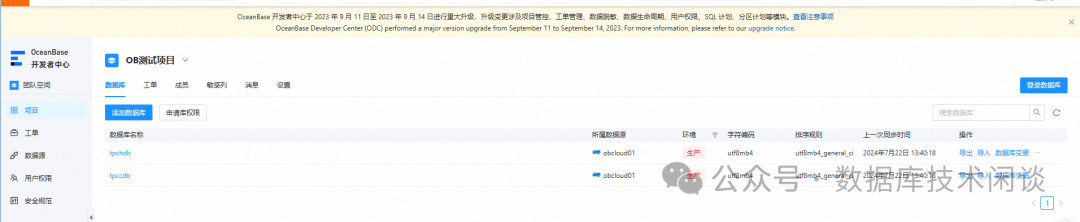下面是 OB 独立的 OBCloud 实例控制台里的 SQL 控制台界面。ODC 是 OB 周边产品里最贴近企业开发需求的最好用的产品。所以,开发人员对 OB 数据库的使用体验往往是最好的。