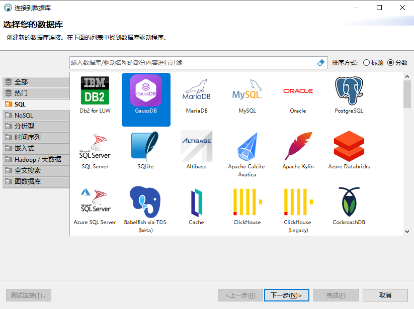 DBeaver官网提供了针对不同操作系统的客户端安装包,可以根据实际需要,访问DBeaver官网下载对应操作系统的24.1.4版本。创建新的数据连接时,可以在DBeaver支持的数据库列表中,非常容易地找到GaussDB,按照向导逐步操作,即可轻松完成连接。
