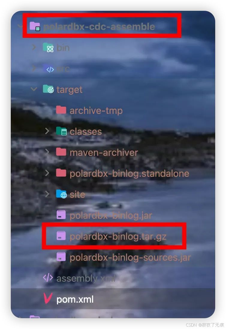 编译完成后 在polardbx-cdc-assemble的target目录下 即可看到压缩包