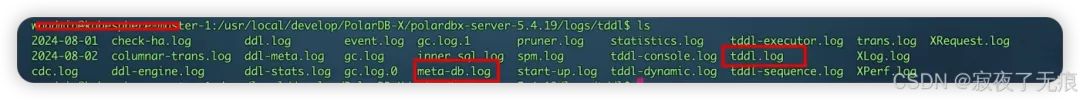 日志文件在根目录下的logs/tddl下 主要日志 tddl.log 和 meta-db.log 里
