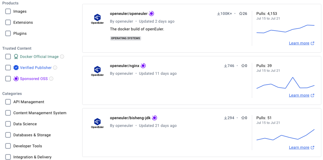 Docker Hub上的OSS (Open Source Software) 镜像是指由开源软件项目(open-source projects)维护和发布的Docker镜像。OSS镜像作为Docker Hub官方认证可信的三类镜像之一(其他两个分别是“Docker Official Image”和“Verified Publisher”镜像),具备更高的曝光度和信任度,详细说明如下: