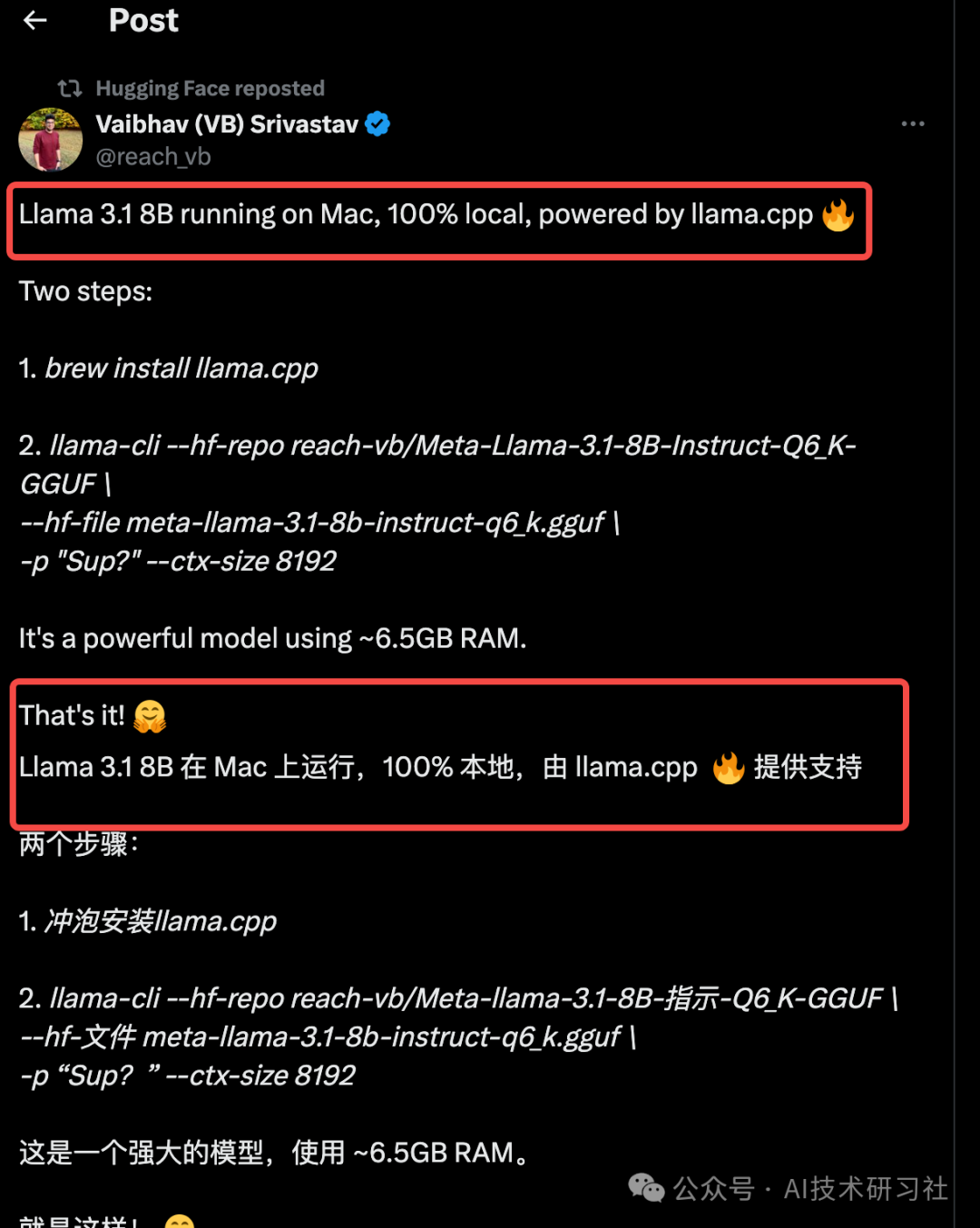 Llama 3.1 8B 在 Mac 上运行,100% 本地,由 llama.cpp