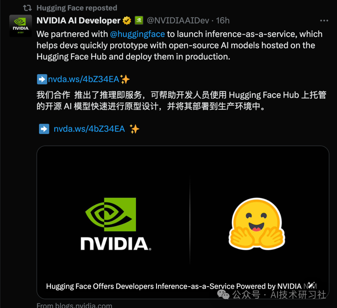 真的很不错的开发 推出由 NVIDIA NIM 提供支持的 Hugging Face 推理即服务,这是 Hugging Face Hub 上的一项新服务。