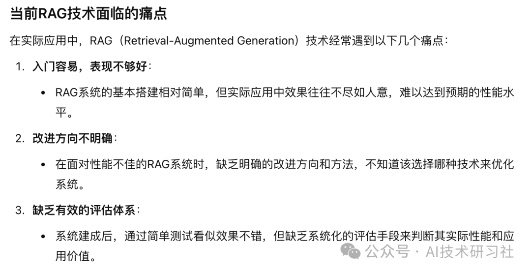 最近我一直在关注和优化RAG(Retrieval-Augmented Generation)相关的内容,总结了一下RAG的痛点和最佳实践,然后重点会介绍如何评估RAG。