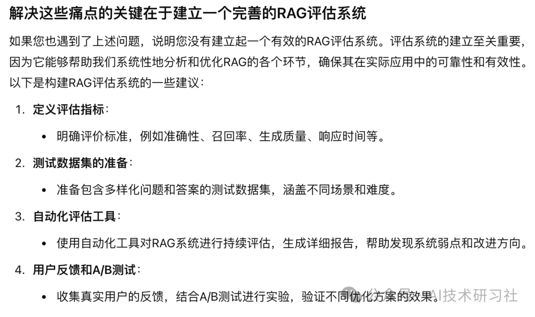 开发RAG系统本身并不困难,但评估RAG系统对于性能、实现持续改进、与业务目标保持一致、平衡成本、确保可靠性和适应新方法至关重要。这个全面的评估过程有助于构建强大、高效和以用户为中心的RAG系统。