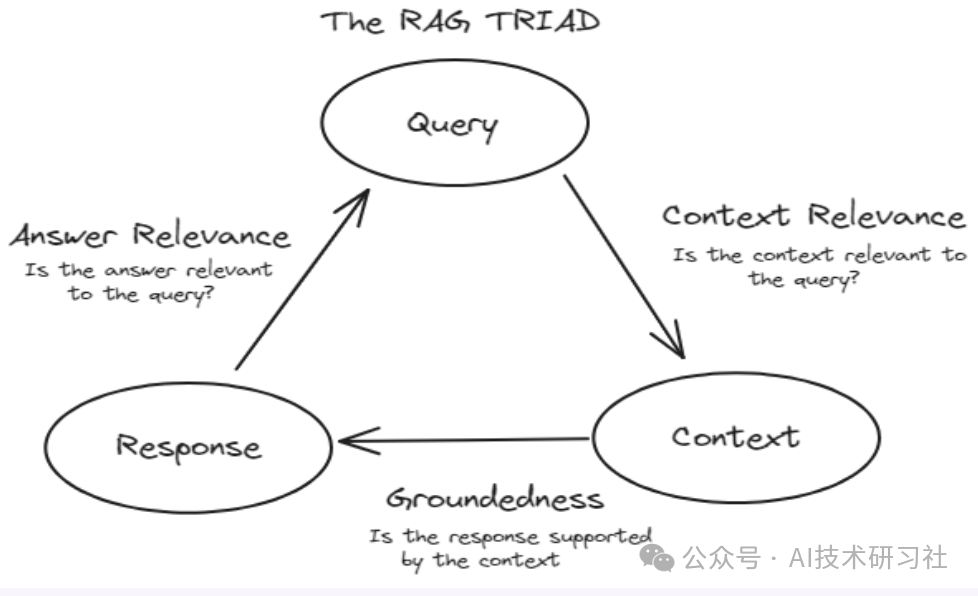 为了有效评估RAG系统,我们通常遵循TRIAD框架。该框架由三个主要组成部分组成: