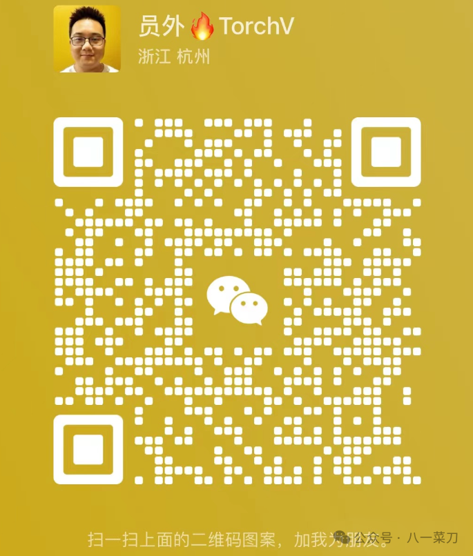 请扫码添加以下微信(员外🔥TorchV),并请您告知您的称呼 和 企业名称 。