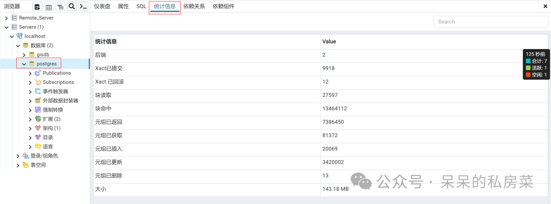 统计信息:查看数据库统计信息,包含事务ID,元组信息等