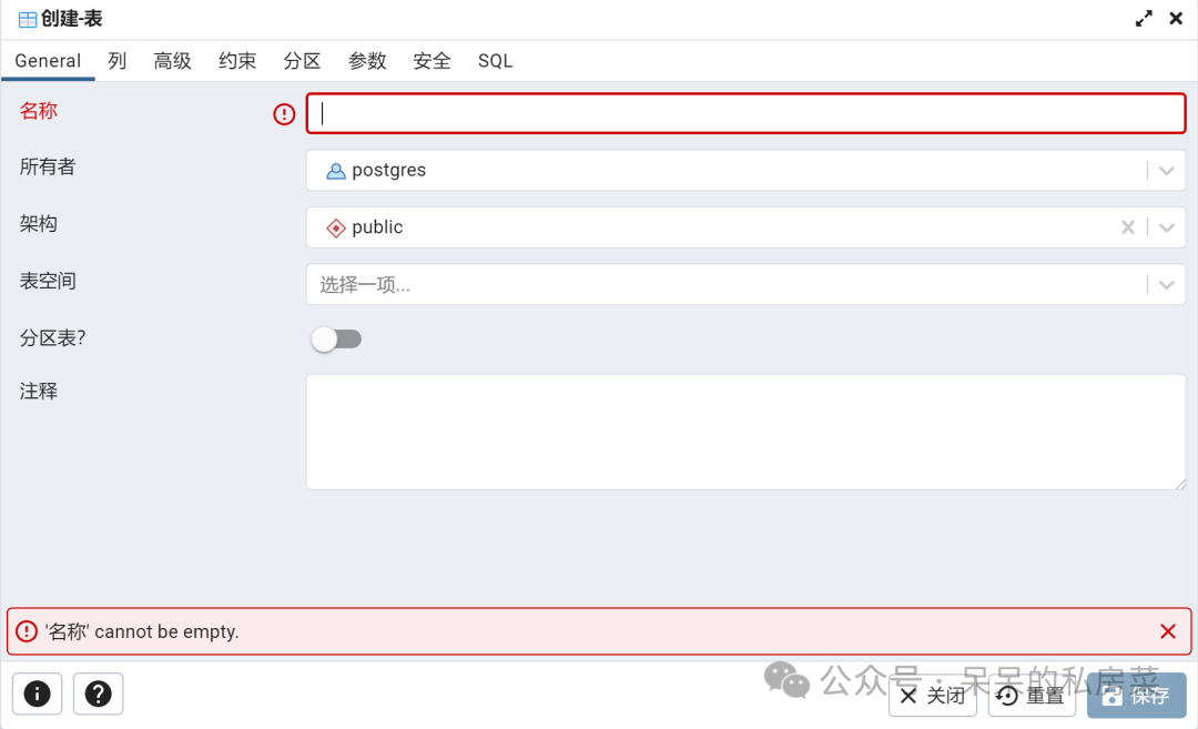 创建表:根据实际需要配置表名、字段、约束、分区等