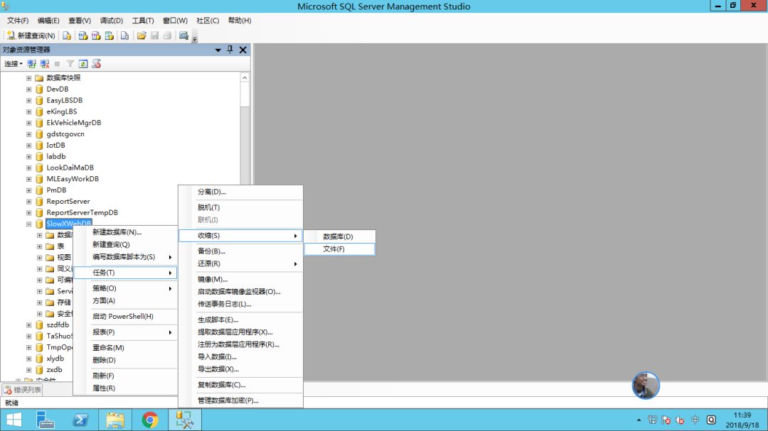 上面的SQL语句是完全用脚本的收缩操作,如果人工收缩的话,