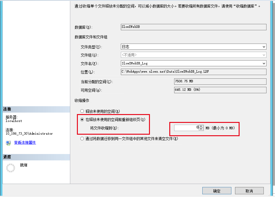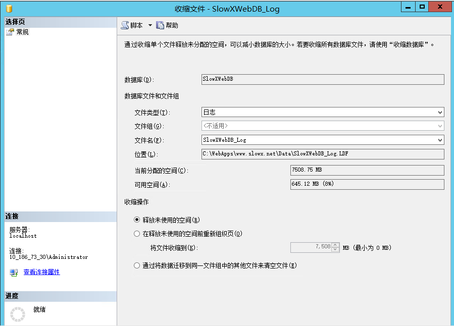 --SlowXWebDB_Log 为数据库日志文件逻辑名