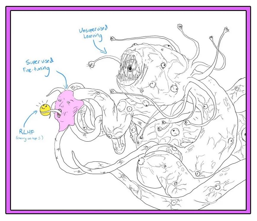2022 年末,OpenAI 发布 ChatGPT 后不久,网上开始流传一个新的备忘录,它比其他任何东西都更能捕捉到这项技术的诡异之处。在大多数版本中,一个名为 "食人魔"(Shoggoth)的爱与魔法怪物,浑身长满触须和眼球,举着一个平淡无奇的笑脸表情符号,似乎在掩饰自己的真实面目。ChatGPT 在文字游戏的对话中表现得像人类一样平易近人,但在这一表象背后却隐藏着深不可测的复杂性和恐怖。(这是一种可怕的、难以形容的东西,比任何地铁都要大——一堆没有形状的原生质气泡",H.P.洛夫克拉夫特(H.P. Lovecraft)在其 1936 年的长篇小说《疯狂山脉》(At the Mountains of Madness)中写道。