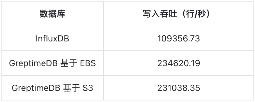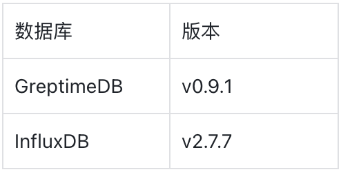 本测试中, GreptimeDB 和 InfluxDB 都使用 InfluxDB Line protocol 写入, GreptimeDB 兼容该协议。