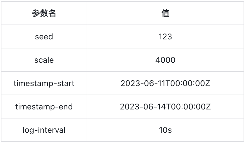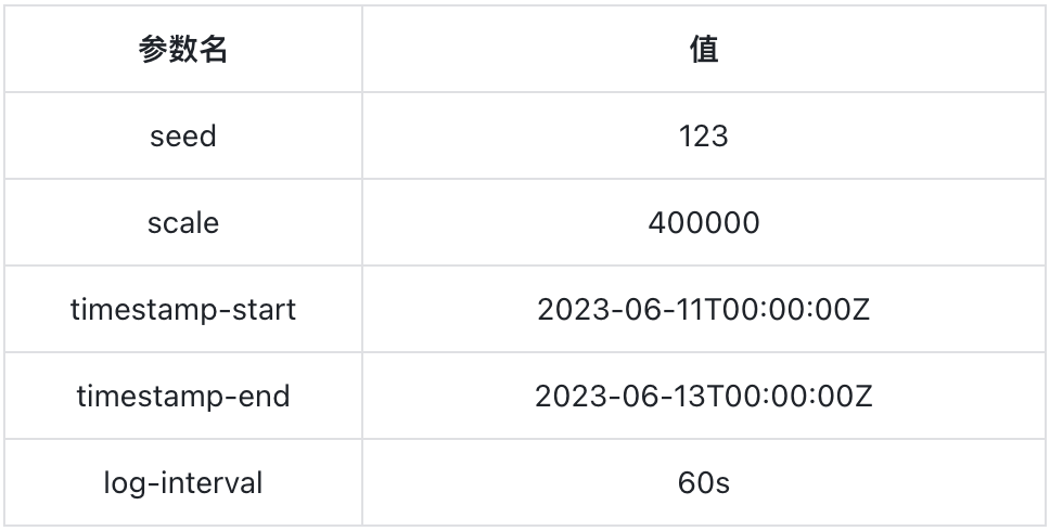 除了 GreptimeDB 为了测试存储 S3 而设置了本地缓存,其他参数配置均未进行特别调整,均采用默认设置。