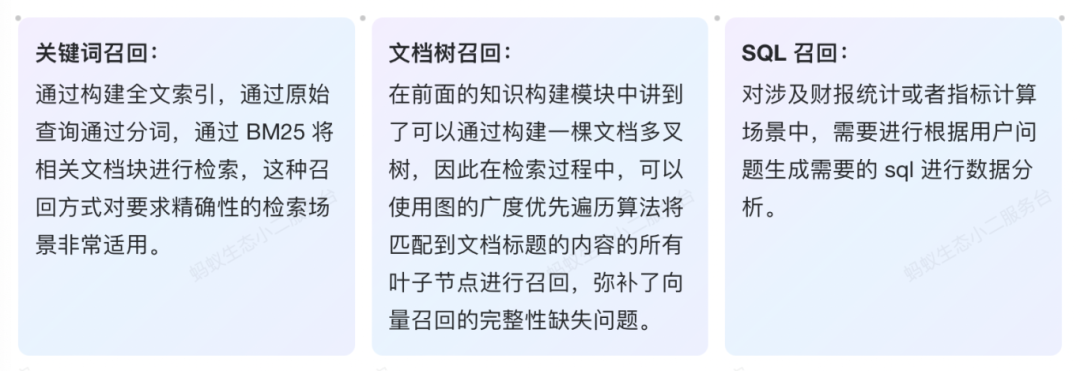 通过对查询进行意图识别后,通过知识检索模块,根据用户的query精准的找到相关性比较高、有一定时效性、比较丰富的内容。目前分为四个阶段,query的改写,元数据过滤,多级召回以及相关性重排序。