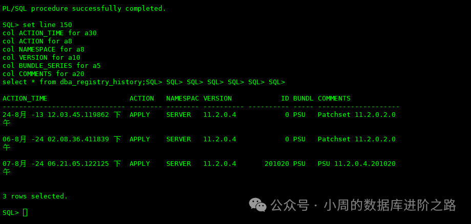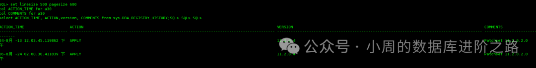 SQL> select ACTION_TIME, ACTION,version, COMMENTS from sys.DBA_REGISTRY_HISTORY;