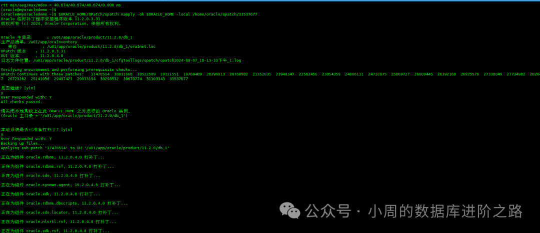 [oracle@myoracledemo 11.2.0]$ $ORACLE_HOME/OPatch/opatch napply -oh $ORACLE_HOME -local /home/oracle/opatch/31537677
