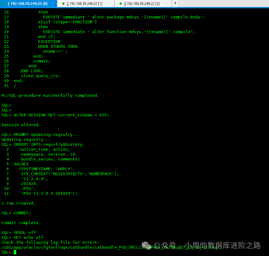 SQL> @?/rdbms/admin/catbundle.sql psu apply