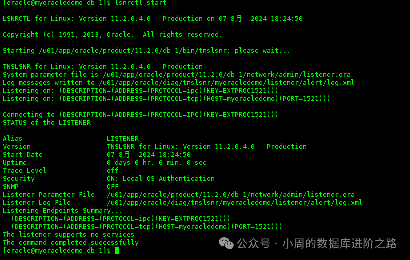 [oracle@myoracledemo db_1]$ lsnrctl start