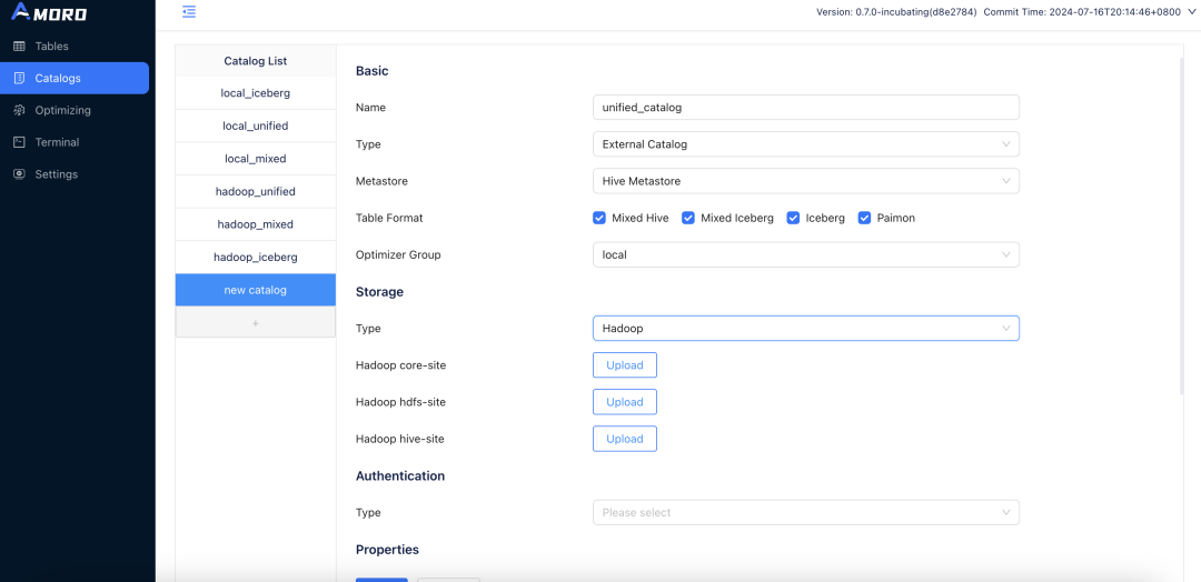 0.7.0 版本中允许在一个 Catalog 下创建 Iceberg, Paimon, Mixed-Iceberg 等多种格式的湖仓表,方便了对多格式使用用户的管理。