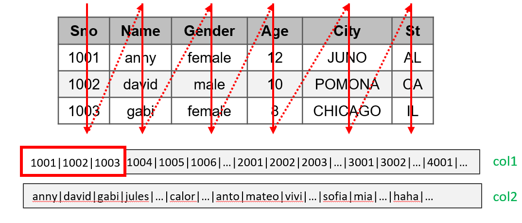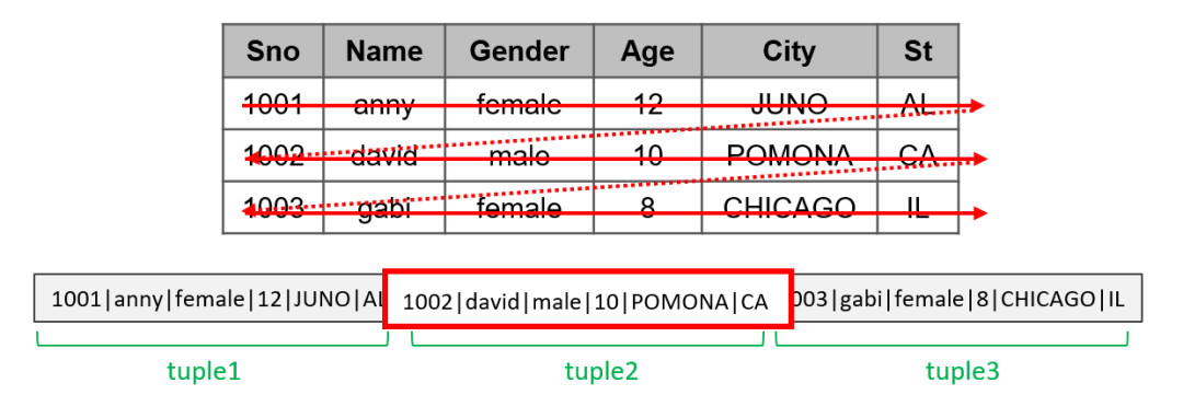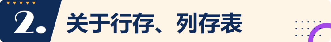 行存表按行存储tuple到Page页面。多用于TP场景,这些场景数据频繁更新,增删改操作多,查询结果涉及表的多列。