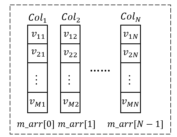 和行执行器一样,向量化执行引擎调度器,遵循Pipeline模式,但每次处理及在算子间传递数据为一次一个Batch(即1000行数据),CPU命中率提高,IO读操作减少。列执行器的数据流结构VectorBatch如下图所示。
