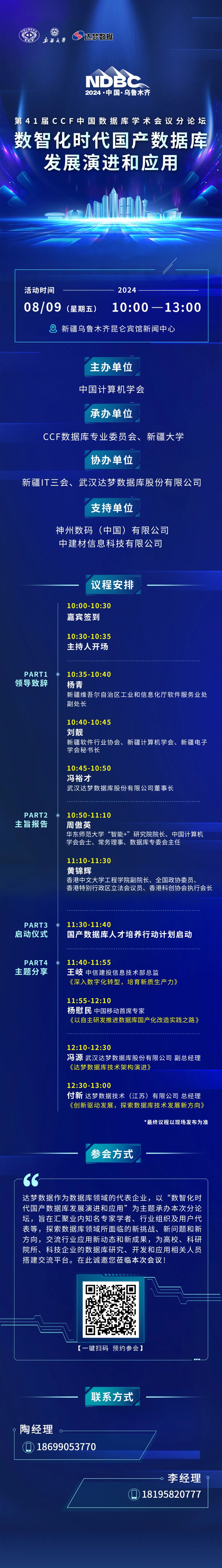 议程发布丨达梦数据携手CCF邀您共赴数智化时代国产数据库发展演进与应用分论坛