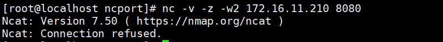 #扫描指定目标ip和端口nc -nvv 172.16.11.210 8080#扫描本地8080端口nc -nvv 127.0.0.1 8080#扫描指定目标IP和端口且输出详细信息nc -v -z -w2 172.16.11.210 8080