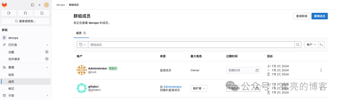 创建一个名为gitlabci的用户,用于提交kustomize更新后的资源清单文件。将gitlabci用户角色指定为维护者。