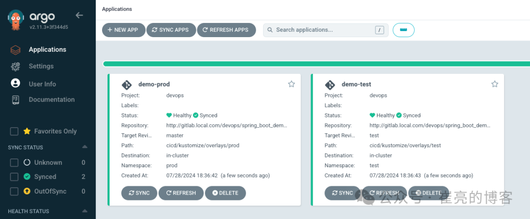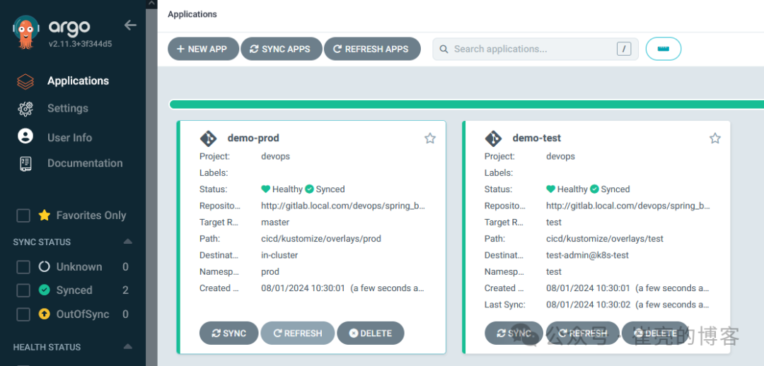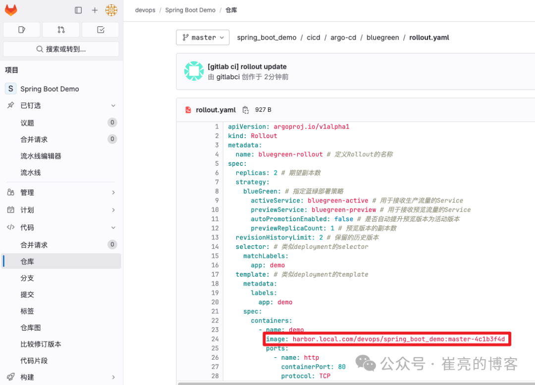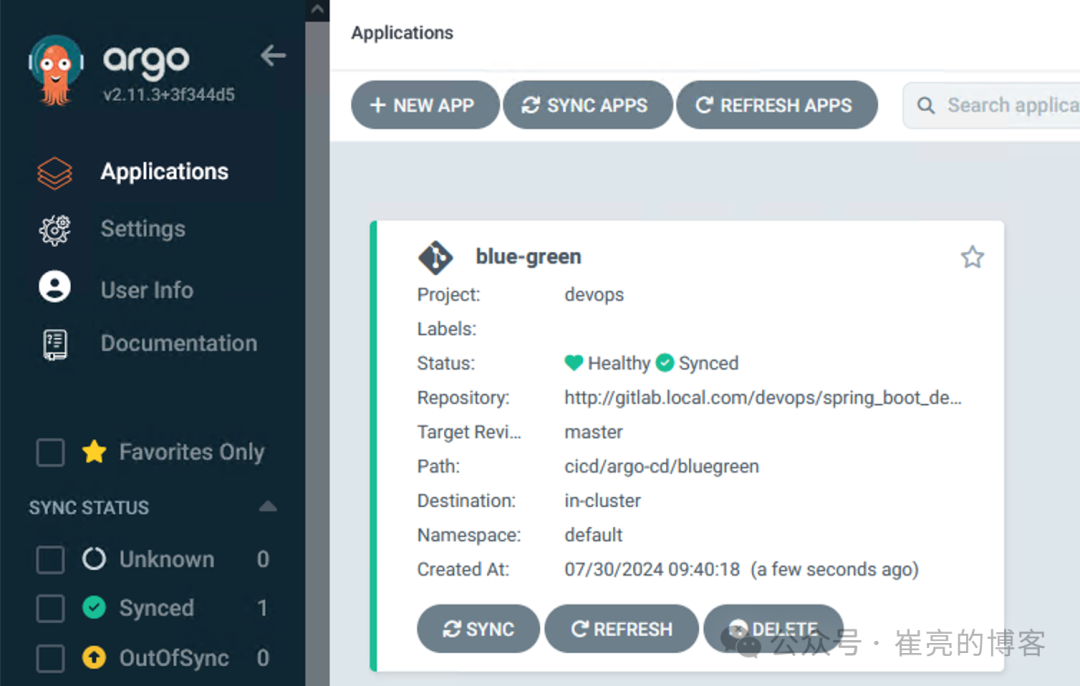 部署ArgoCD Rollouts服务(可选,如果需要蓝绿部署或金丝雀发布时需要部署),具体可参考文档:ArgoCD Rollouts-崔亮的博客 (cuiliangblog.cn)