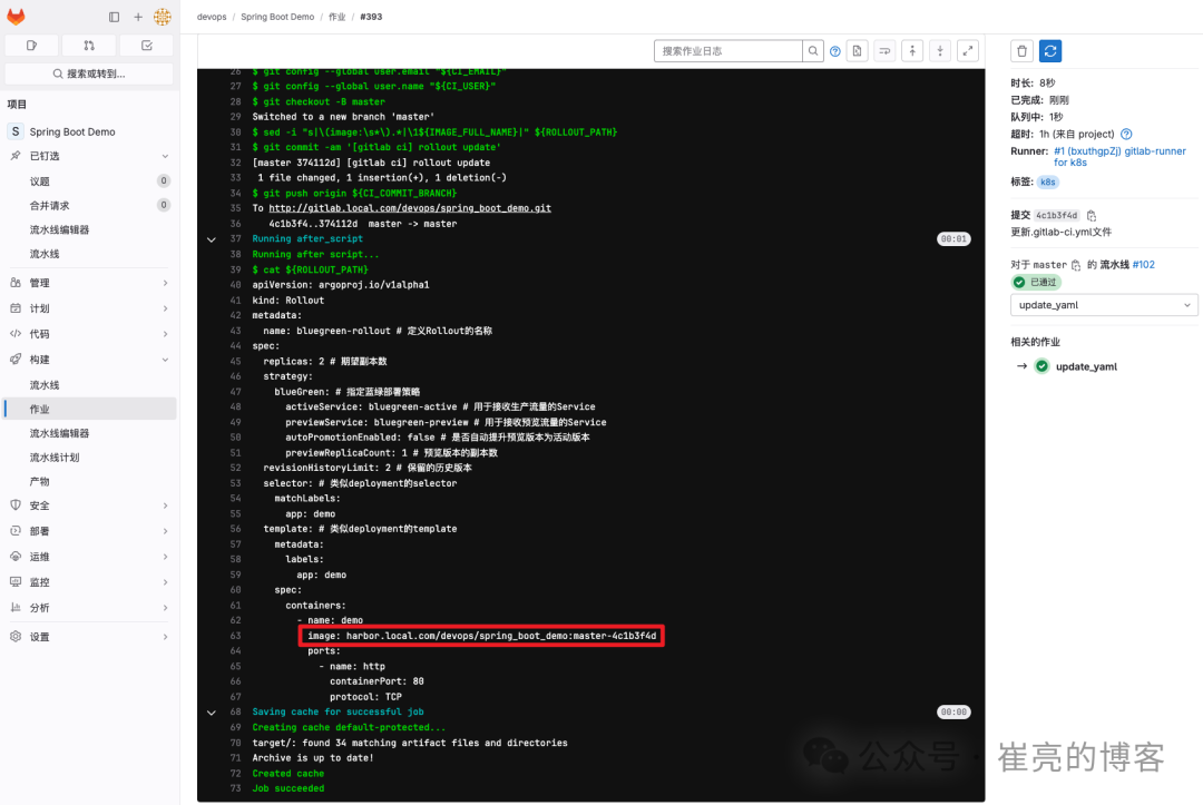部署完成后根据实际情况对Runner进行优化,具体可参考文档:kubernetes类型runner优化-崔亮的博客 (cuiliangblog.cn)