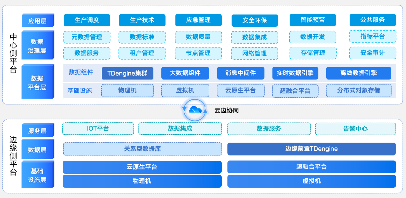 目前,云鼎科技以TDengine作为物联网平台时序数据存储的核心,构建了云端协同的时序数据存储和传输体系。在满足生产单位的时序数据使用需求的同时也支持了集团时序数据分析应用的建设。在生产单位以及集团均部署了TDengine实例,既保障了各方的需求也能够提供最好的性能。
